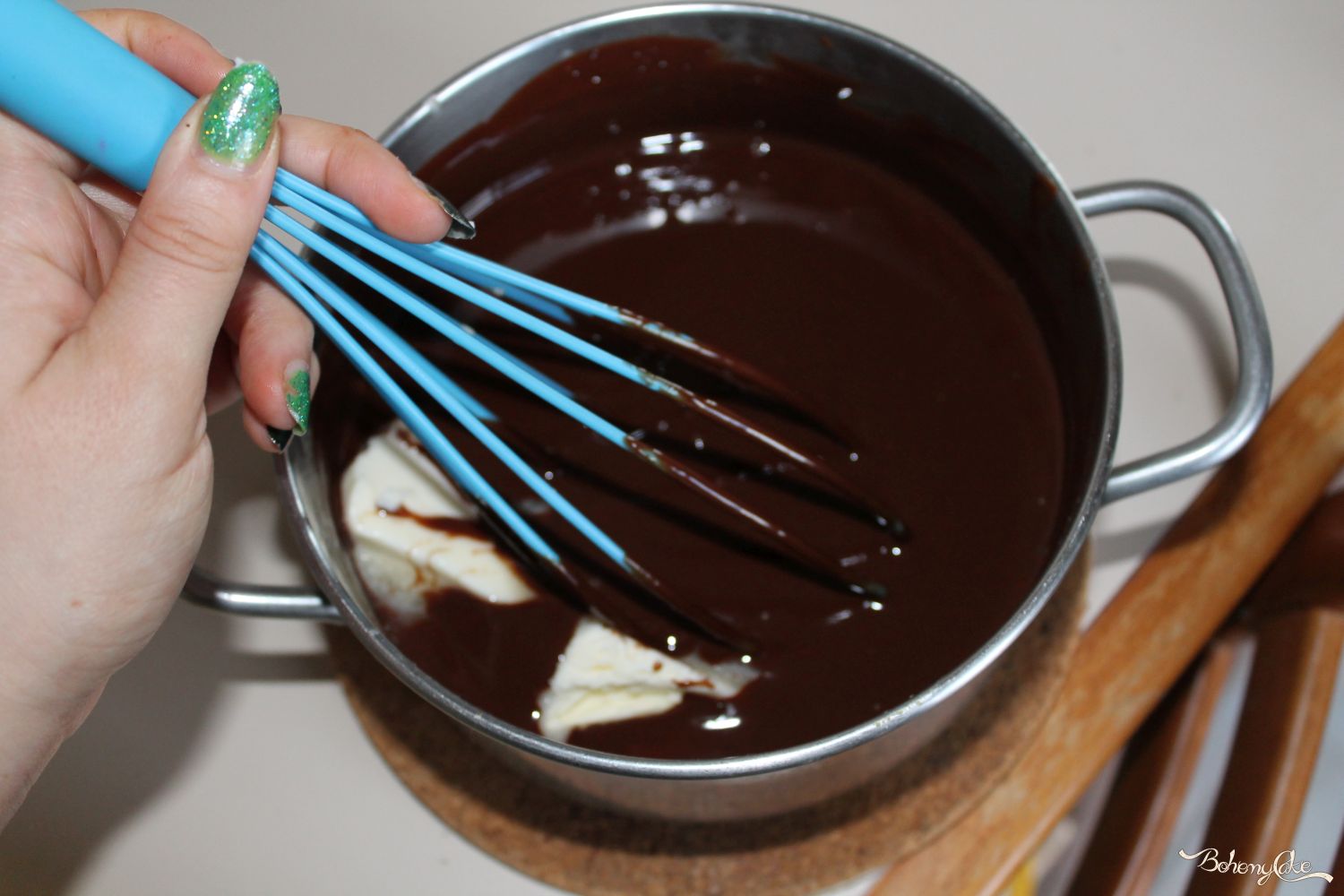 Se la crema ganache si è addensata troppo ed è difficile lavorarla, basterà mescolarla energicamente con un cucchiaio per farla ritornare morbida.