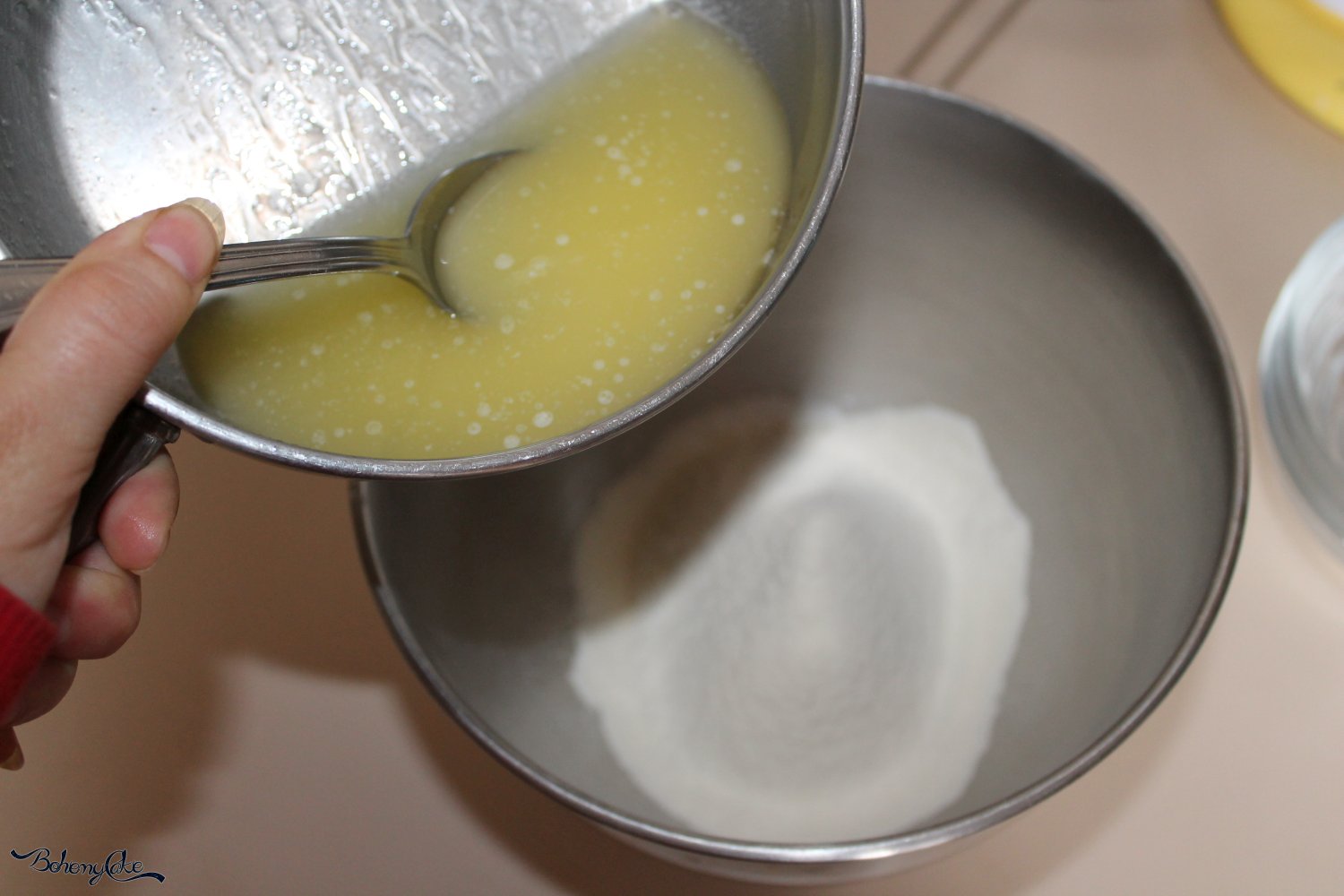 Iniziate a preparare i waffle. Versate in una ciotola lo zucchero semolato con la farina e il lievito in polvere precedentemente setacciati insieme. Fate sciogliere il burro a bagnomaria e lasciatelo raffreddare. Quando sarà completamente freddo unitelo al composto di zucchero, farina e lievito. Separate gli albumi dai tuorli e aggiungete questi ultimi, uno alla volta al composto preparato. Stemperate i tuorli con il latte, mescolando con una frusta per amalgamare per bene il tutto.