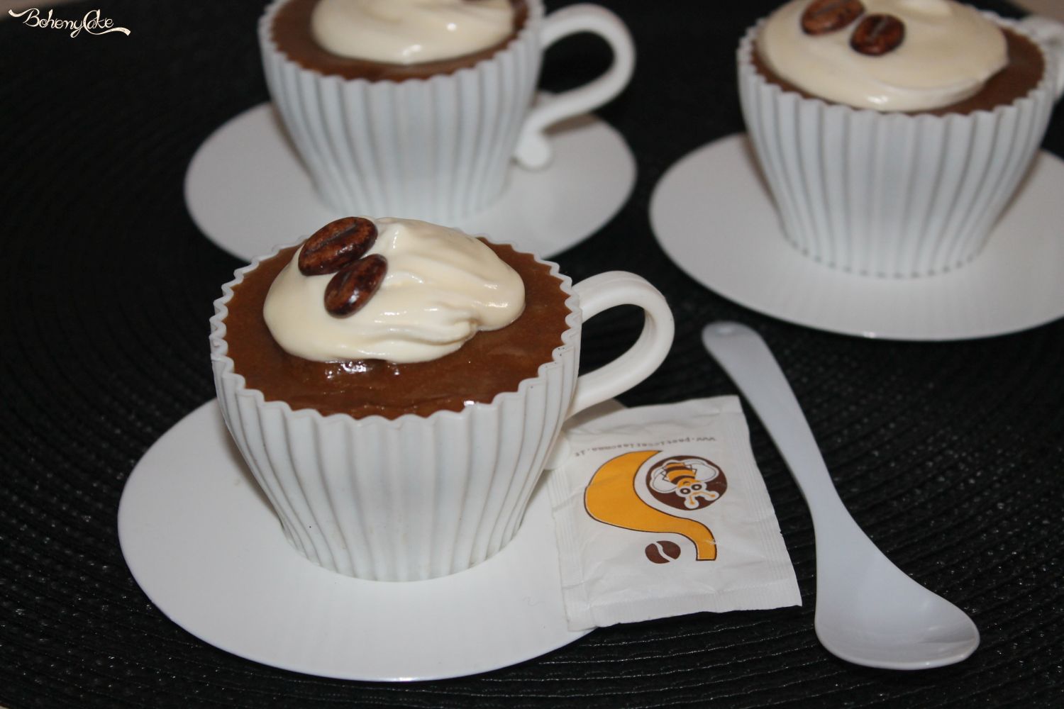 Se non avete gli stampi in silicone a forma di tazza di caffè, potete servire i cupcakes in delle vere tazze di caffè!