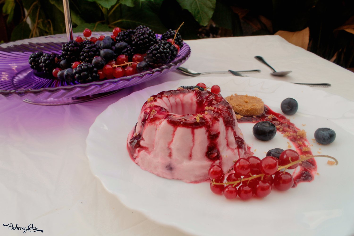 Ora non resta che servire la nostra bavarese con un cucchiaino di salsa, un disco di base croccante e tanti golosi frutti di bosco a volontà!