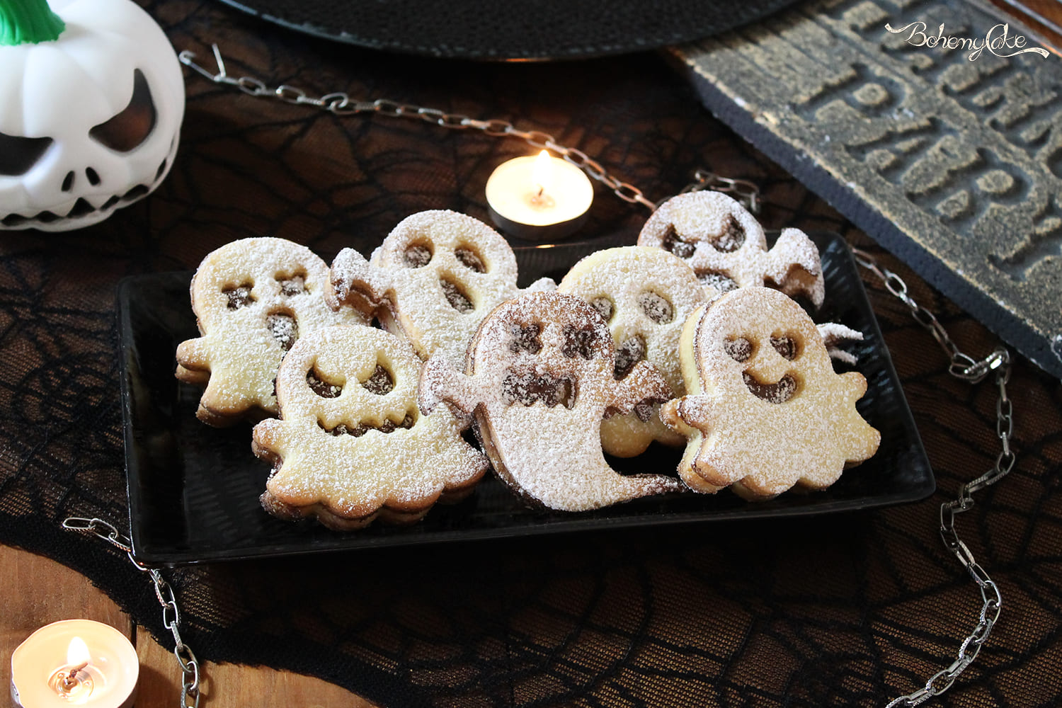 Per iniziare la preparazione dei Fantasmi Golosi alla Nutella, togliete il burro dal frigorifero e tenetelo a temperatura ambiente per circa 20 minuti, poi procedete mettendo in un mixer la farina e il burro tagliato a pezzetti. Frullate molto bene il tutto fino ad ottenere un composto dall’aspetto sabbioso e farinoso. Trasferitelo quindi in una terrina capiente (oppure sul piano di lavoro) e unite lo zucchero, i due tuorli d’uovo e un pizzico di sale. Nella terrina iniziate ad amalgamare gli ingredienti con le mani, poi continuate a lavorare l’impasto su una spianatoia. Non appena la pasta frolla sarà pronta, formate una palla, copritela bene con della pellicola e riponetela in frigorifero a riposare per almeno mezz’ora. Trascorso il tempo indicato, spolverizzate leggermente una spianatoia con la farina, prendete la pasta frolla e stendetela aiutandovi con un mattarello: dovrete ottenere una sfoglia dello spessore di circa mezzo centimetro. Con una formina ricavate i vostri fantasmini. Posizionate i biscotti sulla leccarda e cuocete il tutto in forno preriscaldato a 180° per 12 minuti. Una volta cotti, lasciateli raffreddare, spargete la nutella sulla base intera, adagiate l’altra metà del biscotto. Ecco pronti i vostri spaventosissimi Fantasmi Golosi alla Nutella!