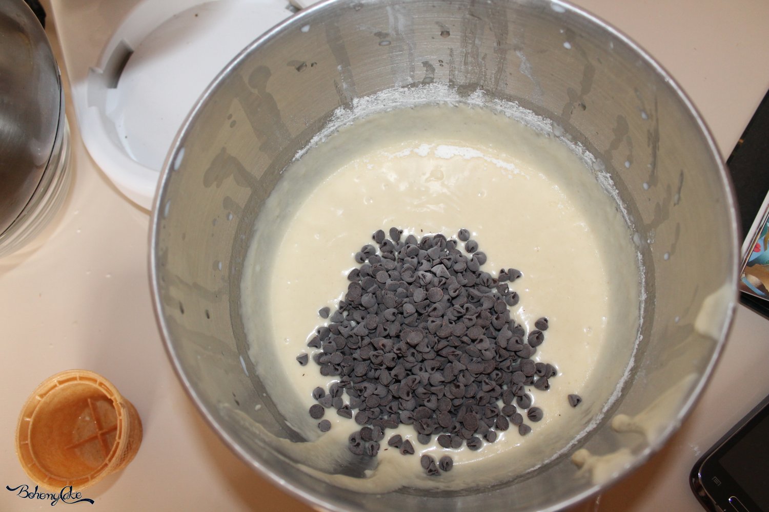 Per iniziare a preparare questi sfiziosi muffins, setacciate la farina in una ciotola con il lievito. Unite lo zucchero, un pizzico di sale e mescolate. In un’altra ciotola battete l’uovo con la frusta. Versate il latte a filo, continuando a battere, poi unite il burro precedentemente fatto fondere in un pentolino a fuoco basso. Formate la fontana al centro della farina, versatevi il composto liquido preparato. Impastate per amalgamare bene gli ingredienti fino ad ottenere un impasto morbido e lucido. Unite le gocce di cioccolato e mescolate con un cucchiaio di legno oppure con una spatola.